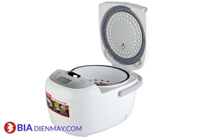 Lòng nồi được phủ lớp chống dính cao cấp, không chất độc hại đảm bảo an toàn sức khỏe và cơm không bám vào thành nồi gây cháy cơ mà dễ chùi rửa. Tay nắm bằng nhựa đặc biệt giúp lấy nồi ra tiện lợi ngay cả khi nồi còn rất nóng. Nắp trong của nồi cơm điện mang đĩa nhiệt giúp giữ cơm ấm và mềm. đồng thời không khiến khá nước rơi trở lại lên cơm. Nồi dùng nguồn điện áp 220V - 240V/ 50Hz - 60Hz tương đối ổn định.